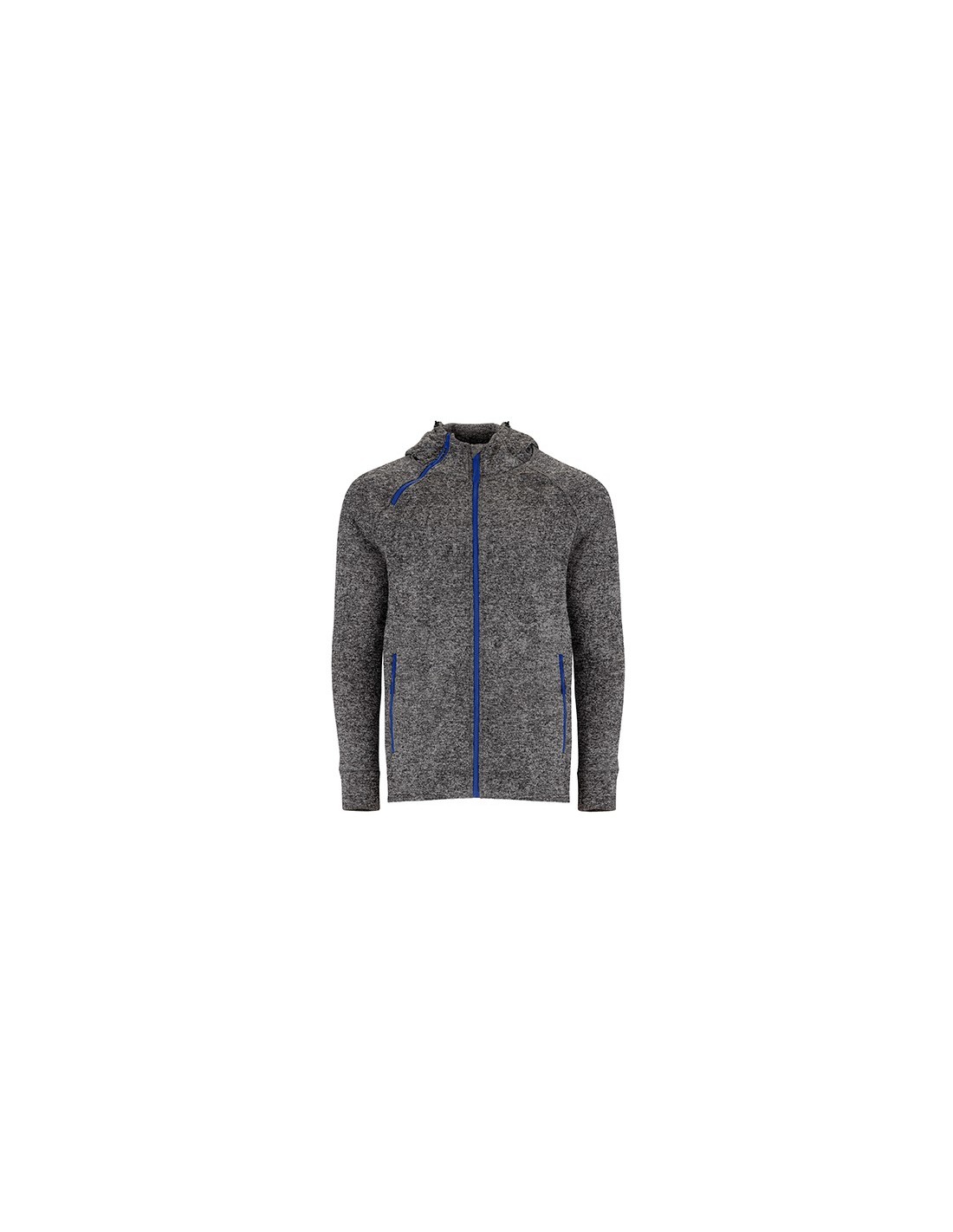 Chaqueta de punto felpado con capucha. Cremalleras inyectadas con tiradores de diseño, cremallera central con protector de barbilla, y una segunda cremallera decorativa en cuello para facilitar apertura. Cuello alto con ajustadores de diseño y cubrecosturas interior. Dos bolsillos frontales con cremallera. Bajo trasero más largo que el delantero, con ajustadores de diseño.
