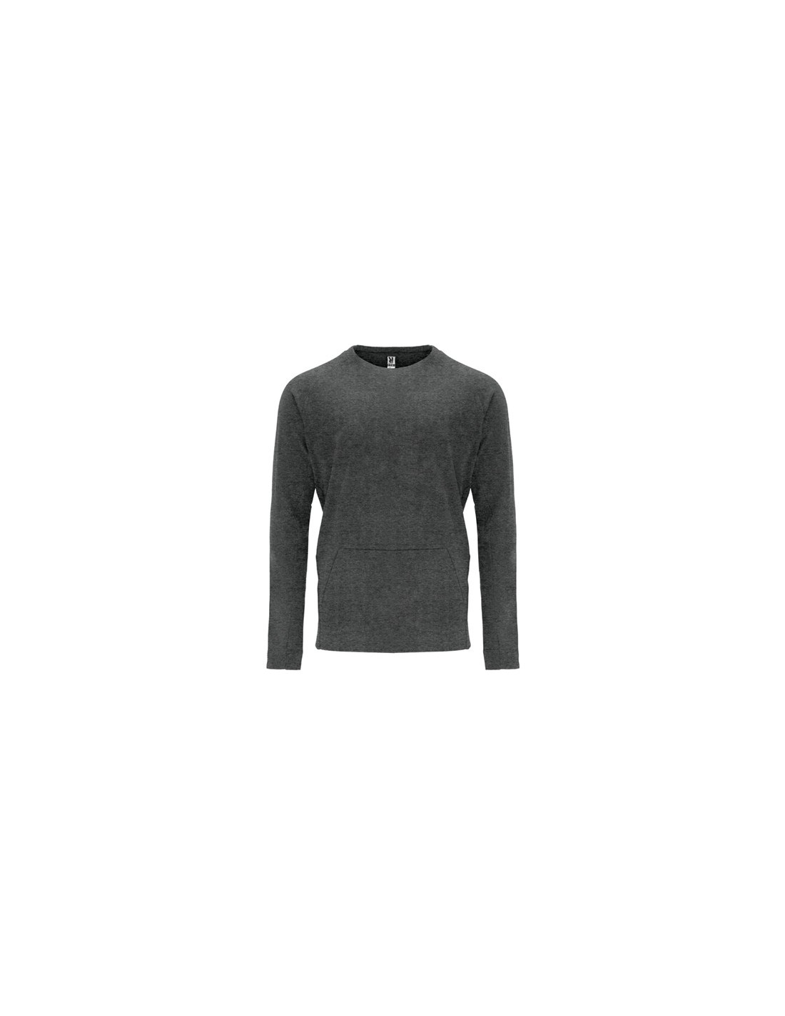 Sudadera de manga larga estilo ranglán. Parte posterior del cuello y parte inferior de los puños en canalé 1x1. Bolsillo canguro con terminación sin costuras. Costuras laterales diagonales hacia parte frontal.