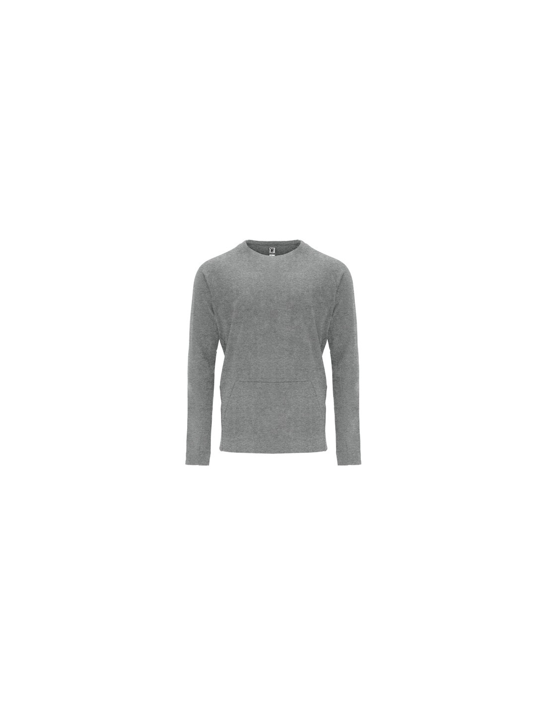 Sudadera de manga larga estilo ranglán. Parte posterior del cuello y parte inferior de los puños en canalé 1x1. Bolsillo canguro con terminación sin costuras. Costuras laterales diagonales hacia parte frontal.