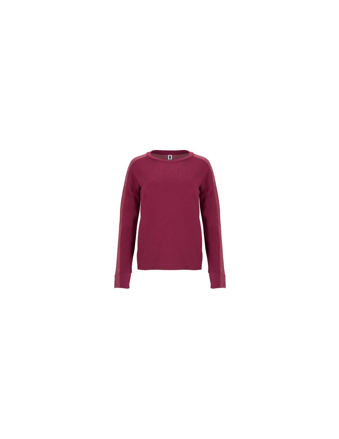 Sudadera de mujer, combinada con dos tejidos y dos colores. Cuello, mitad del puño y bajo espalda en tejido canalé 2x1. Puños con corte asimétrico. Bajo con aperturas laterales y espalda más larga que el delantero.