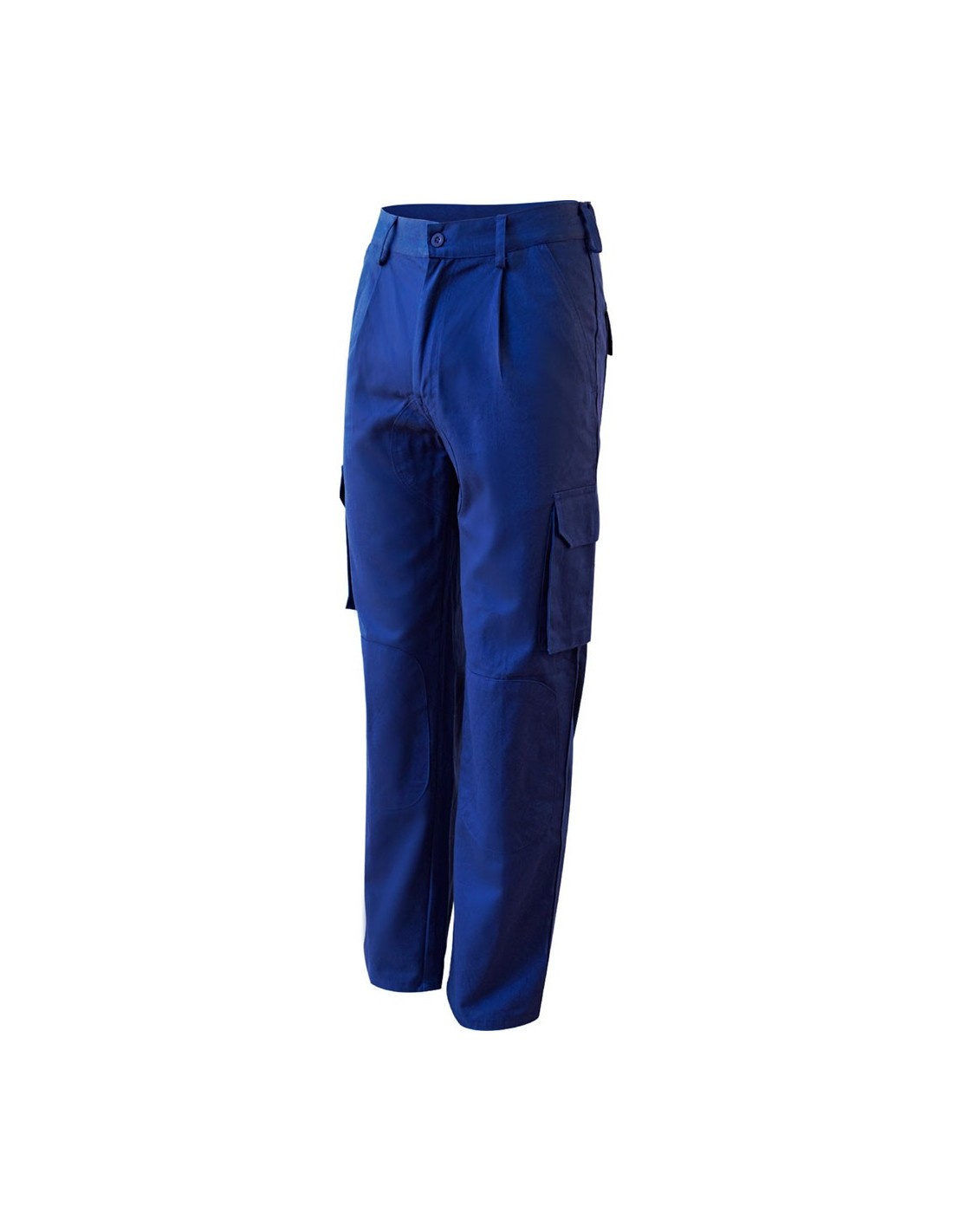 Pantalon laboral de tejido resistente con refuerzos en rodillas y entrepiernas, doble costura de seguridad, con cintura elastica y bolsillos delante, detras y en los laterales.